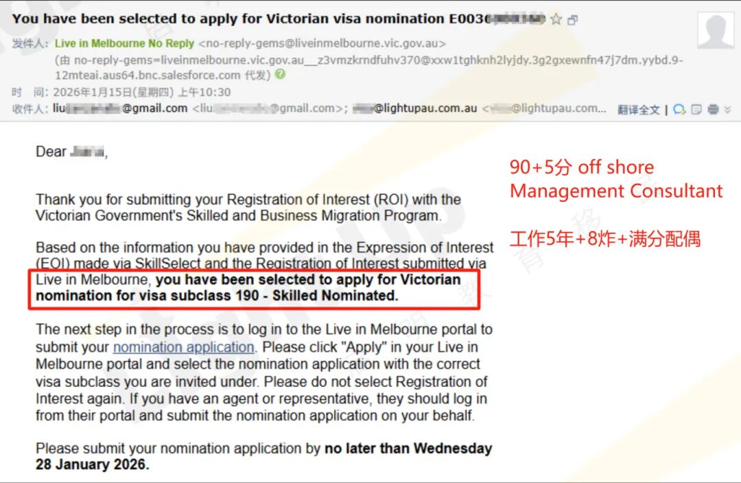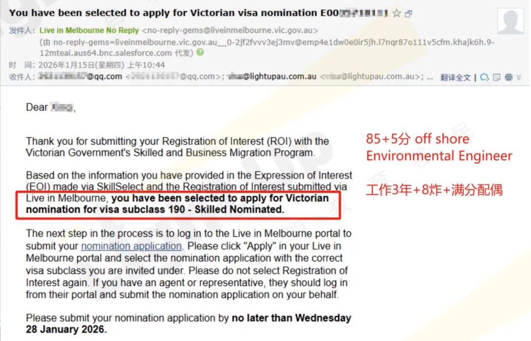 打破“优先职业垄断”,不再局限于医疗、教育、建筑等优先领域,更多职业都有机会被捞!覆盖范围更广,非热门职业的宝子也别放弃希望~ 【working in VIC】仍是硬指标!划重点:州内申请人想获邀,在维州工作是必要条件!没有本地工作的话,哪怕分数再高也容易被跳过。维州这波依旧是“本地打工人优先”的逻辑,毕竟更青睐能直接为本地贡献的申请人。 拿到ROI预邀请后要怎么办?